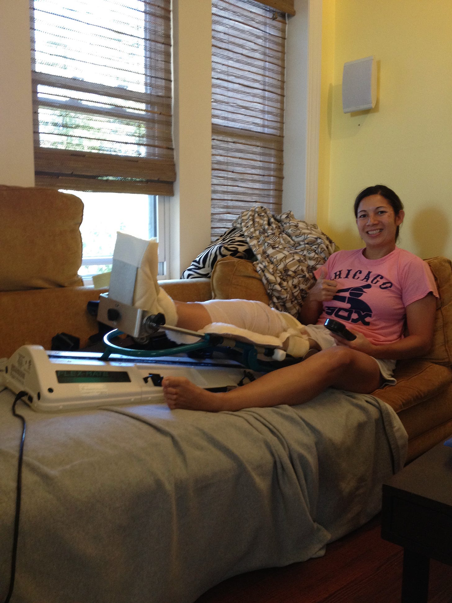 Since my early twenties through today, I have: broken my nose (ran too fast into a door), been hit by a car on my bike, hit a car on my bike, been hit by a car while crossing the street, separated my shoulder (bodyslam), cracked my tailbone (roller derby), cracked my ribs (derby again), and torn the cartilage in my knee (repaired with two procedures). I once attempted a knee slide across a bar room floor to “Wrecking Ball” and my knee popped with every step for three straight days; karaoke-induced injuries are my blood of Kali.
